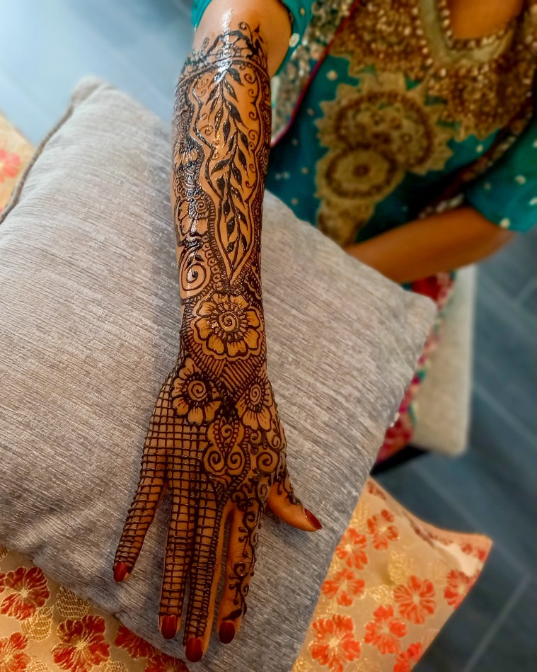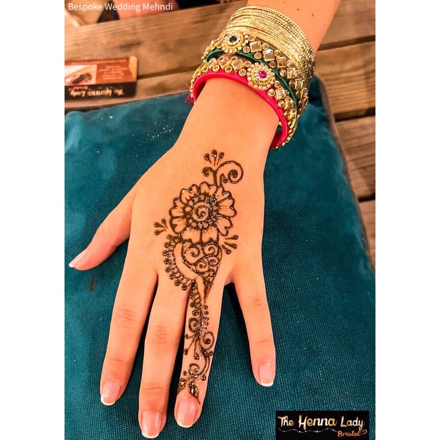 To be honest having both sides of hands, or even two hands at a large party or event is not ideal logistically. As you must keep natural henna on for a minimum of 4-5 hours to develop properly, you need to think of the logistics of putting coats on, greeting people, dancing etc, not to mention going to the toilet! You want to enjoy the party, not worry about ruining your henna. My time includes my own henna seal to keep your design protected and make sure it stays on a long time.