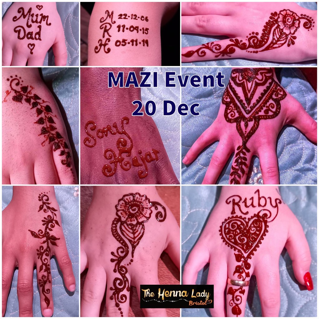- Including Breaks – (I am a little flexible if you feed The Henna Lady!) but will charge hourly once I go 20 mins over time (7 hours is my limit in one day).