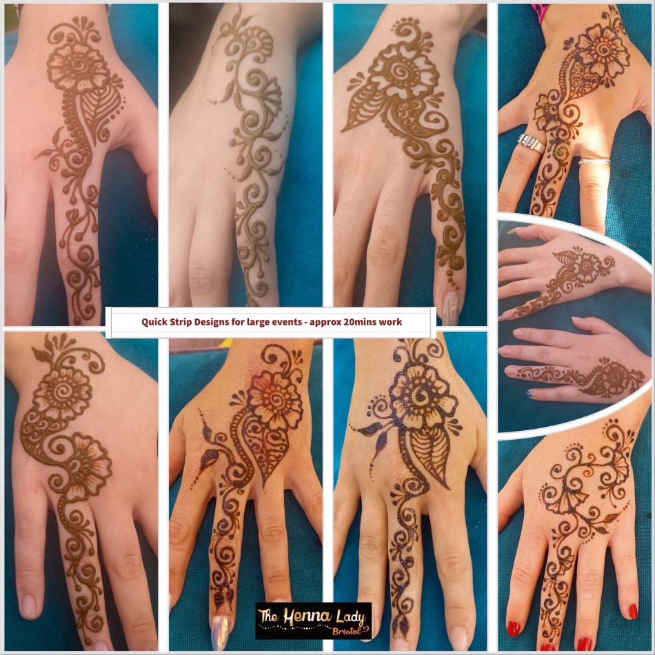 1 hour, 3-hour, day-rate & bespoke packages available – extra time per hour. It all depends on number of hands and designs wanted: