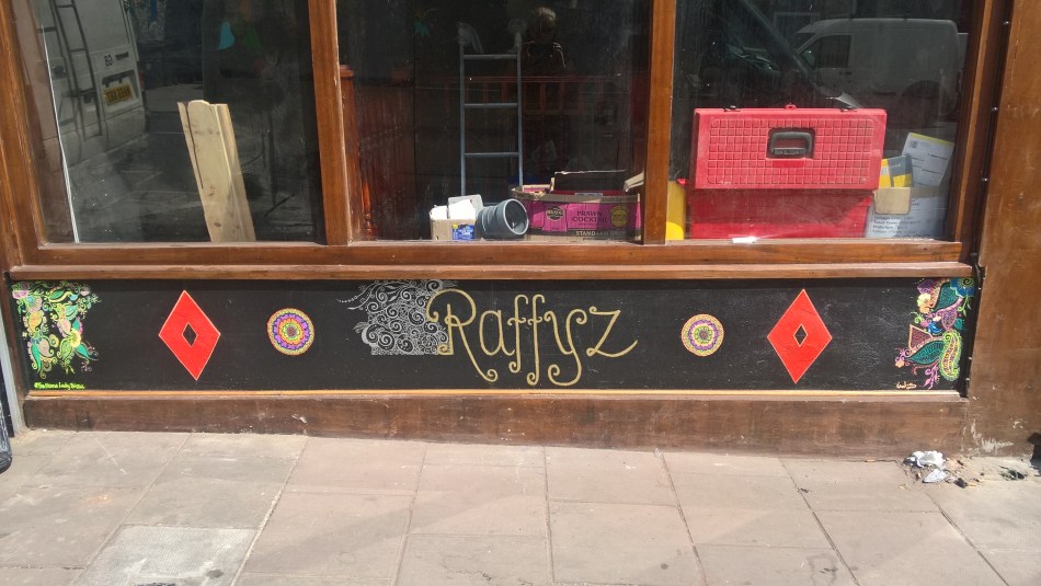 Café Atlas new menu, St Nick’s Market, BristolDoor muralFood menuLogo for Glen Crooks at The Learning Centre KitchenHand painted henna bagWomen’s Event PosterCharity shop wall, Gloucester Road
